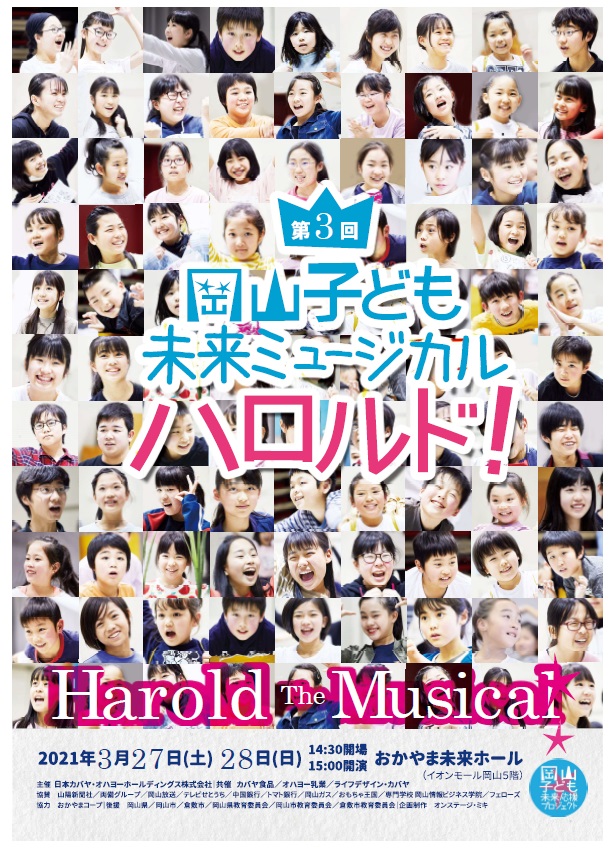 2021年3月27・28日に「第3回岡山子ども未来ミュージカル(1年延期)」(日本カバヤ・オハヨーホールディングス主催)の延期公演を開催いたします!